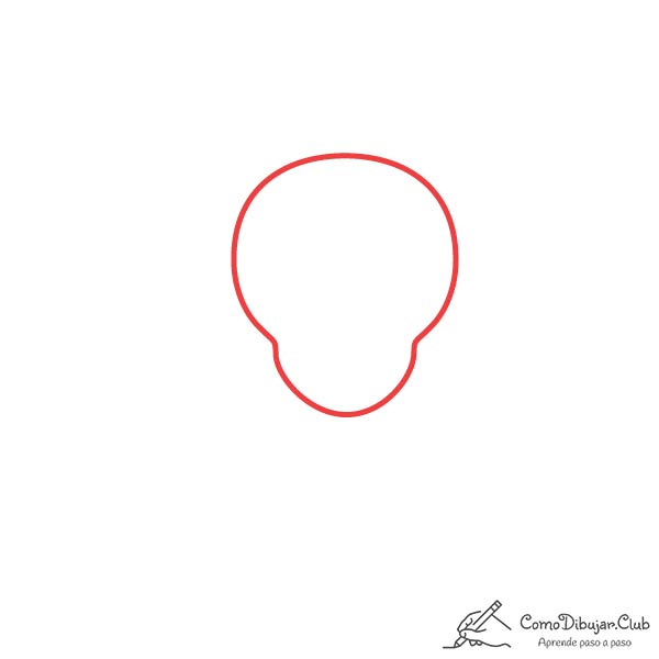 - Empezaremos dibujando la cabeza y el maxilar inferior de nuestro nuevo amiguito donde luego asentaremos sus facciones 🐶. Para ello trazaremos un círculo que se estrechará en la parte inferior obteniendo una figura parecida a una pera 🍐 “gordita” al revés.